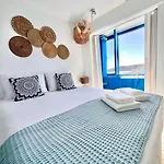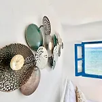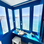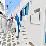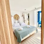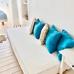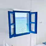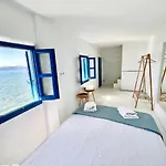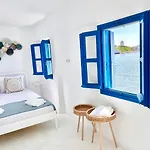 Mills Suites Mykonos, som har en terrass med utsikt över havet, ligger 10 minuters bilresa från flygplatsen Mykonos.