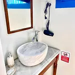 Det finns mathörna med te-/kaffebryggare. I köket finns även vattenkokare, kylskåp och köksredskap. Remezzo Mykonos, som serverar ett brett utbud av måltider, ligger ungefär 5 minuters promenad bort. Den närmaste busshållplatsen är Old Port, som finns nära detta boende.